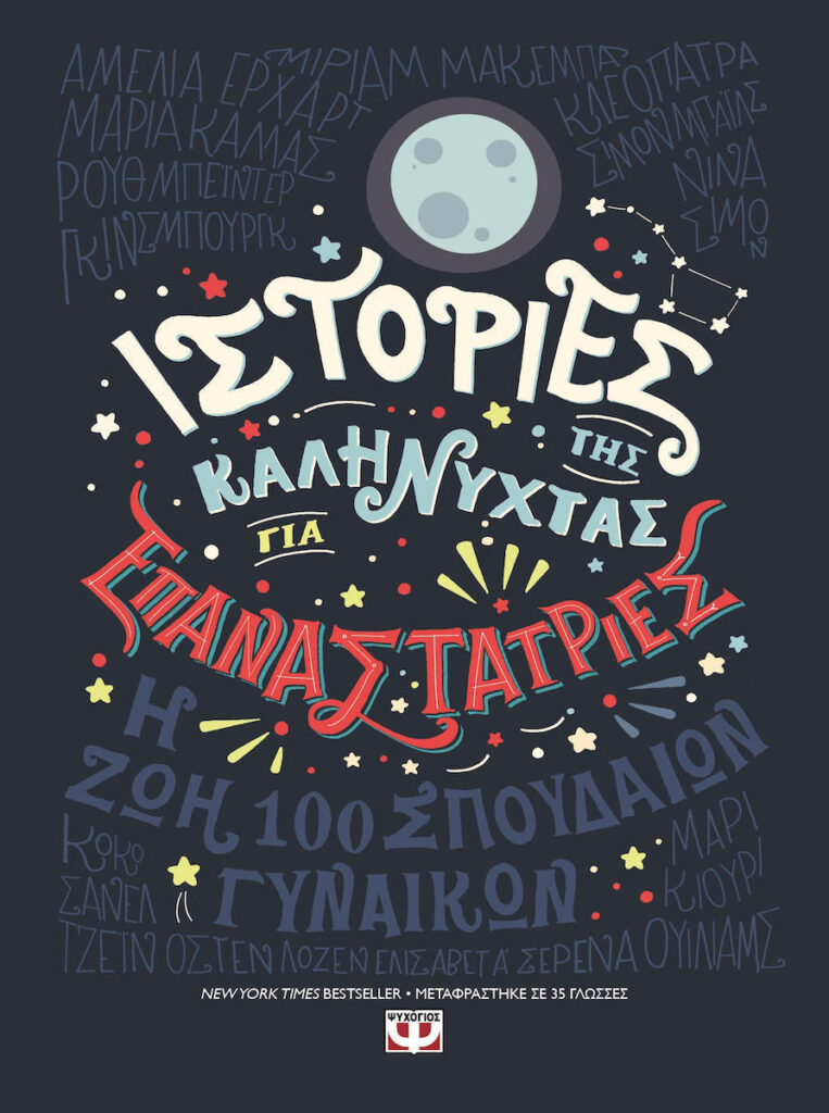 Το βιβλίο Ιστορίες της Καληνύχτας για Επαναστάτριες δίνει νέο περιεχόμενο στα παραμύθια, εμπνέοντας τα κορίτσια με τις ιστορίες 100 ηρωικών γυναικών, από τη βασίλισσα Ελισάβετ μέχρι τη Σερένα Ουίλιαμς. Εικονογραφημένο από 60 γυναίκες εικονογράφους από κάθε γωνιά του πλανήτη, είναι το βιβλίο που έχει λάβει τις περισσότερες χορηγίες στην ιστορία της συμμετοχικής χρηματοδότησης.