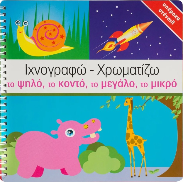 Υπέροχα βιβλία µε στένσιλ, για να µάθουν τα παιδιά την αλφαβήτα, τους αριθµούς, τα χρώµατα και τα αντίθετα ιχνογραφώντας και χρωµατίζοντας!
